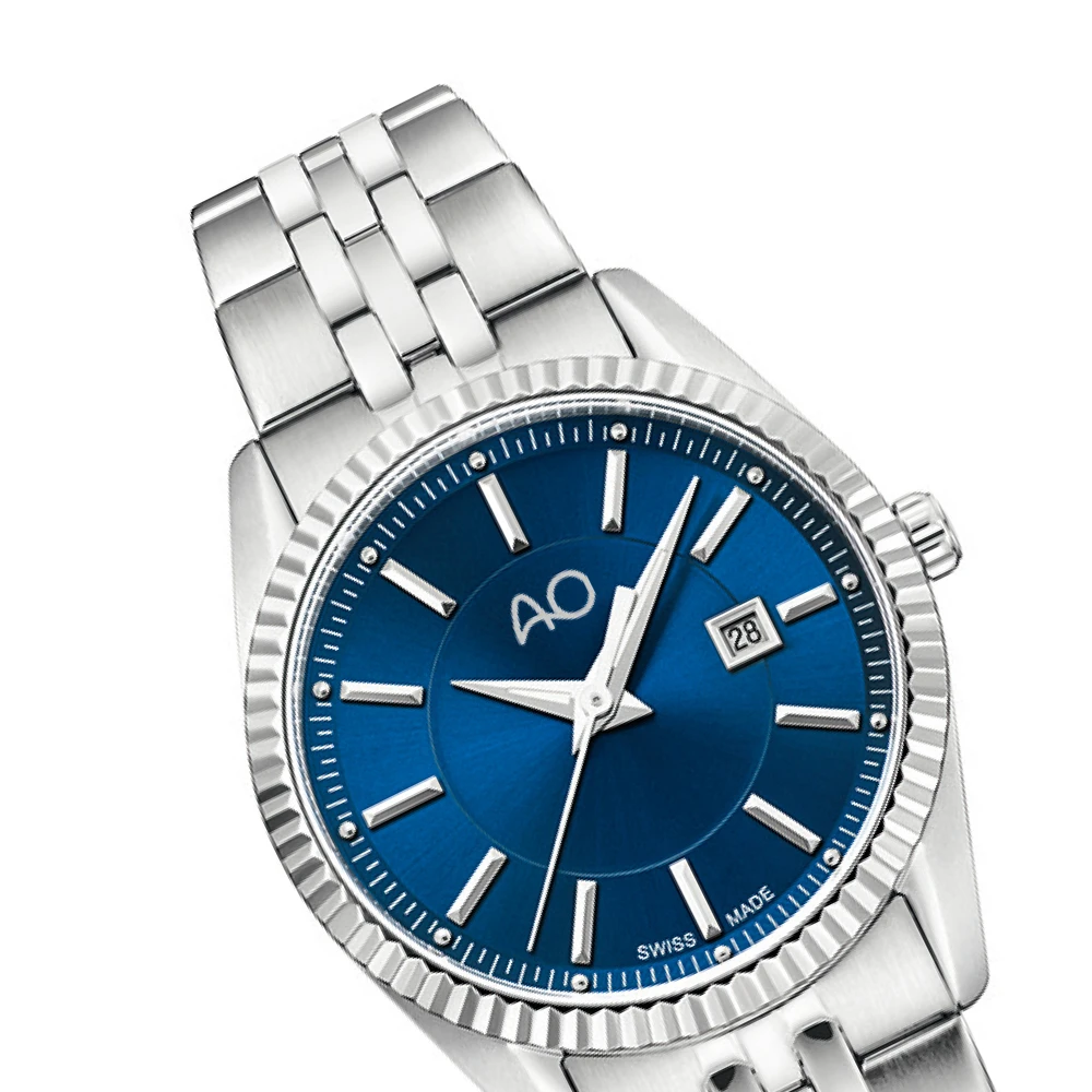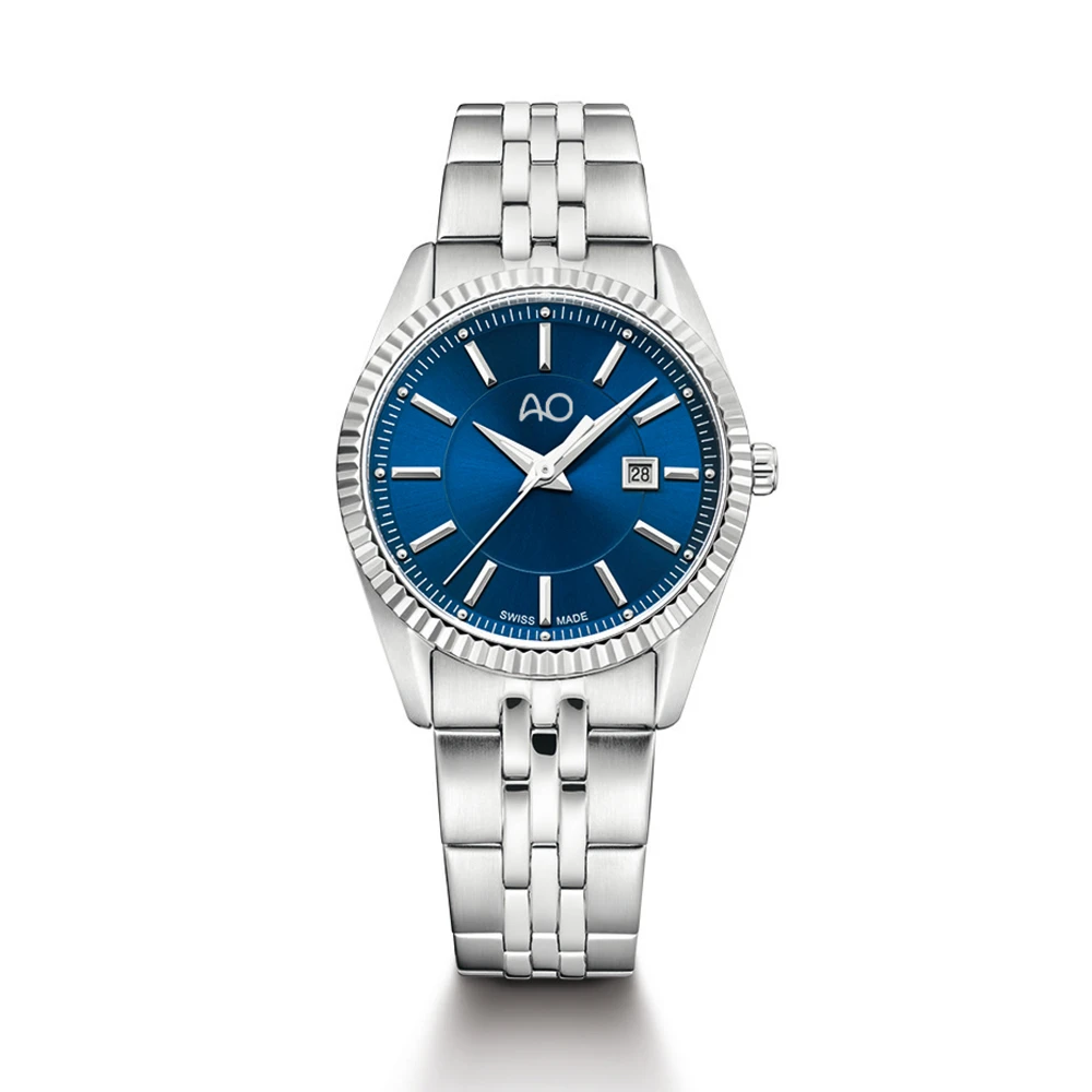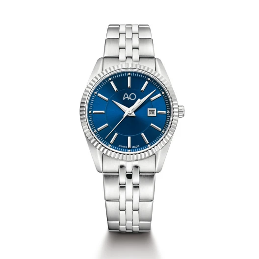 Women's watch, 3-hand, quartz, Ronda 775 movement, extra-hardened K1 mineral crystal with sapphire coating, Silver stainless steel case, blue dial with indexes, Silver stainless steel strap, water resistant to: 5 ATM/50 m.