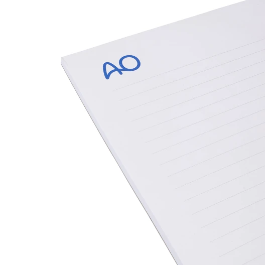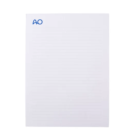 Classic notepad bound at the spine, with 50 sheets of paper 80 g/m², squared or lined, bottom sheet cardboard 700g/sqm.